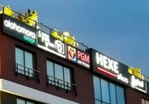 Twoja marka widoczna 24/7 – podświetlane kasetony, litery 3D i podświetlane logo.